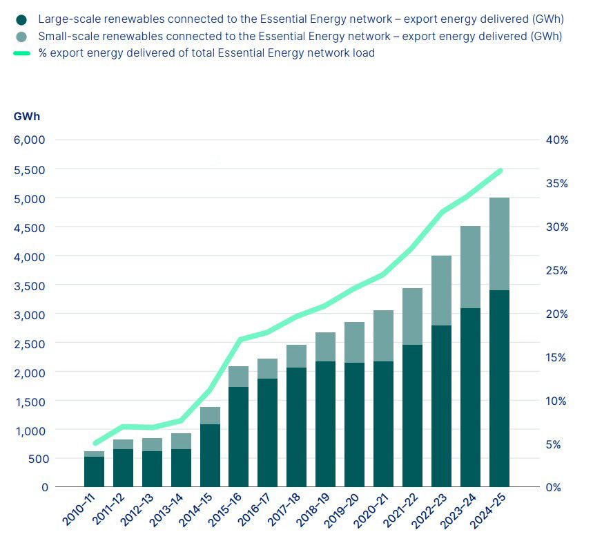 FIGURE 2. Growth in export energy delivered to the Essential Energy network from large-scale and small‑scale renewables
